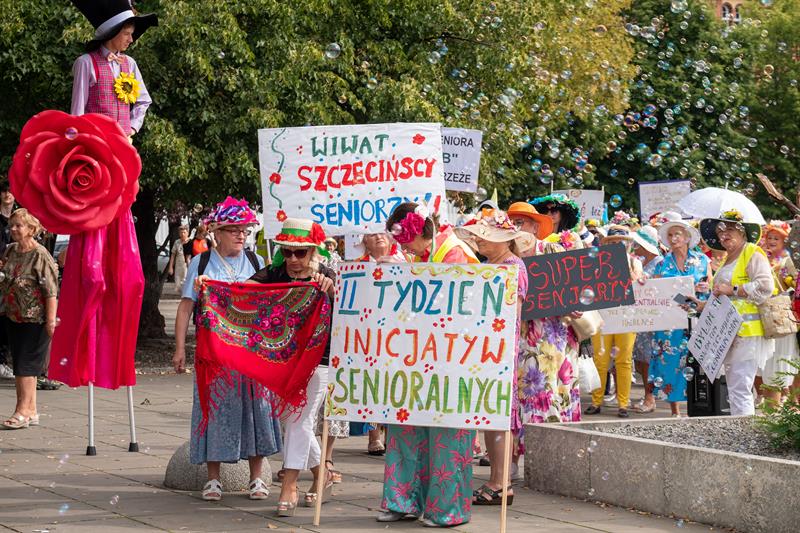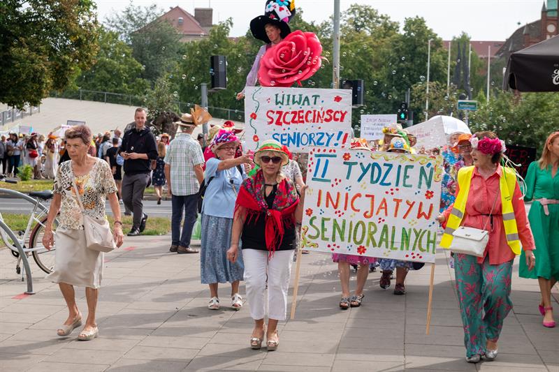 Seniorzy ze Szczecina wyruszyli w poniedziałek po godz. 11 z placu Solidarności. W barwnym korowodzie dotarli na Jasne Błonia, a uwagę przechodniów i mijających ich kierowców zwracali m.in. pięknymi kapeluszami. Zachwycali i przekazywali pozytywną energię. W ten sposób rozpoczęli II Tydzień Inicjatyw Senioralnych.