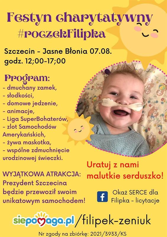 W zdobyciu środków na leczenie Filipka pomagają zbiórki, aukcje oraz festyny charytatywne. Najbliższy - już w niedzielę (7 sierpnia) - w Szczecinie. Odbędzie się na Jasnych Błoniach, a potrwa w godz. 12-17.