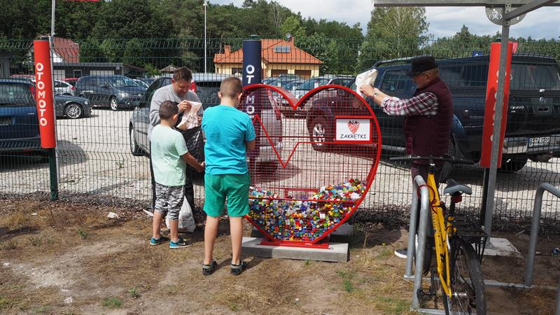 Serce na nakrętki stanęło w Uniemyślu (gmina Police). Pozostanie tam przez całe wakacje. Każdy, kto je napełnia, pomaga choremu dziecku. Później pojemnik trafi w inne miejsce na terenie gminy - tam, gdzie również będzie potrzeba rozkręcenia pomocy.
