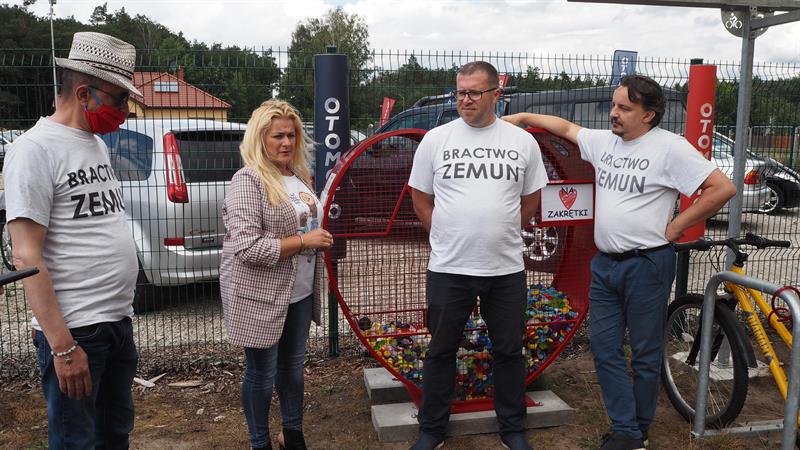 - Pani sołtys Uniemyśla dowiedziała się, że my, "Zemuny", jesteśmy w posiadaniu fajnego pojemnika, który pomaga w akcjach charytatywnych, polegających na zbiórce zakrętek. Powiedziała: "przywieźcie do mnie". Tak też zrobiliśmy. Pojemnik będzie w Uniemyślu w czasie wakacji. Jest już zainstalowany, zamknięty, przekazujemy pani sołtys klucze do kłódki, żeby można było go opróżniać.