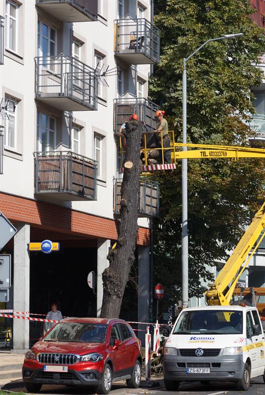 Przy al. Bohaterów Warszawy - jak widać na zdjęciu - w Szczecinie właśnie się rozpoczął sezon wycinania drzew. Mimo że wciąż trwa okres ochronny ptaków, piły poszły w ruch. Na życzenie miejscowej wspólnoty mieszkaniowej, a za zgodą urzędników miasta.