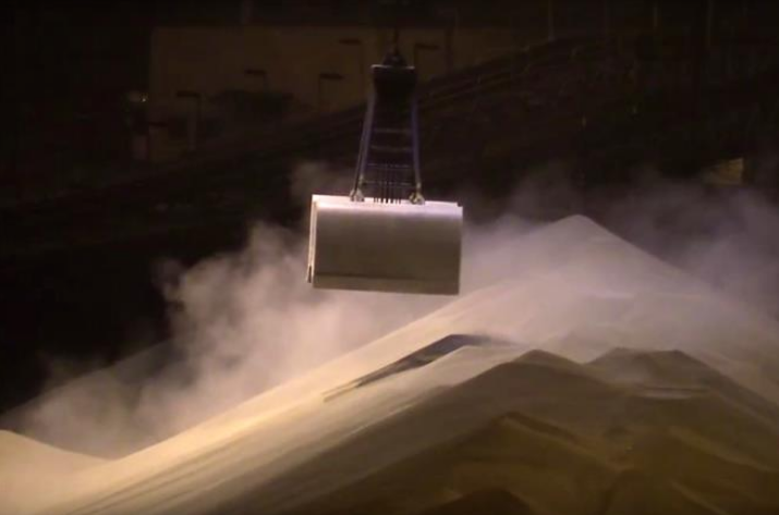 Na zdjęciu: Ludwik Heinsch, prezes OT Port przekonywał niedawno, że przy załadowaniu siarki nie będzie pylenia. A na zdjęciu granulat siarki podczas przeładunku w świnoujskim OT Porcie…