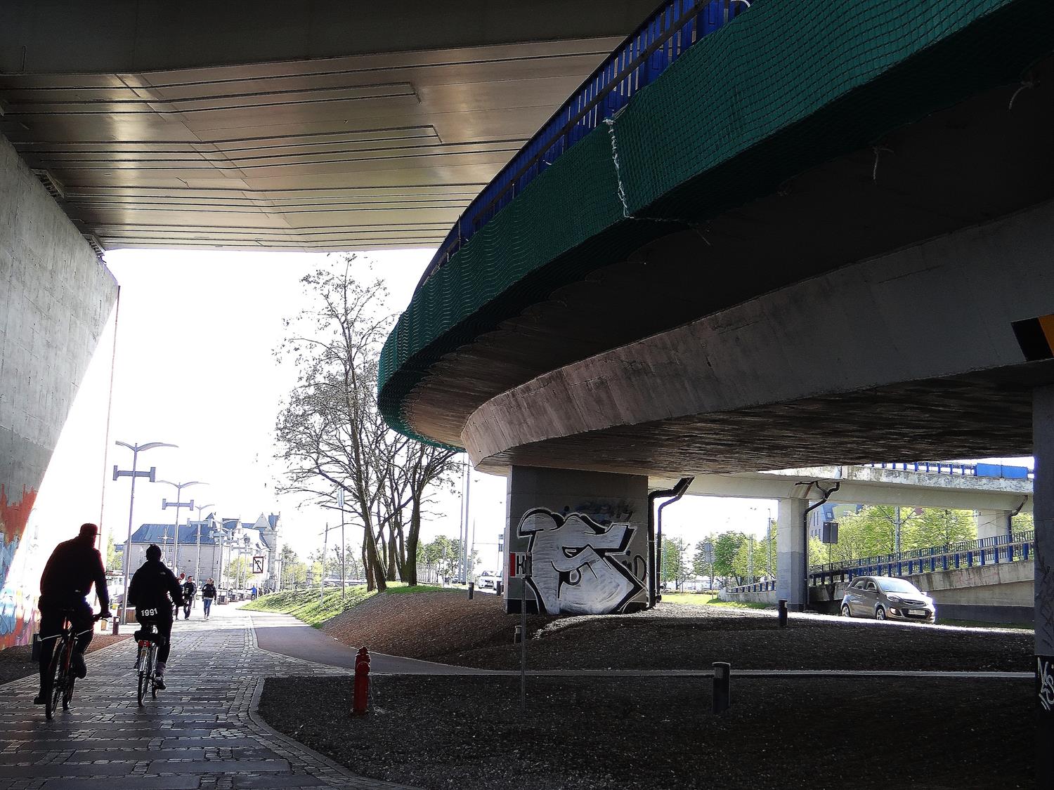 Na odcinki betonowych obrzeży estakad Trasy Zamkowej zostały naciągnięte zielone siatki maskująco-zabezpieczające. Maskują ona ubytki i zabezpieczają, by odłamki nie spadły na przejeżdżające pod nimi samochody, rowerzystów i na głowy osób przechadzających się wzdłuż ulic Jana z Kolna czy odrzańskich nabrzeży. Takie same siatki przytroczone są także na odcinkach estakad nad ulicą Energetyków.