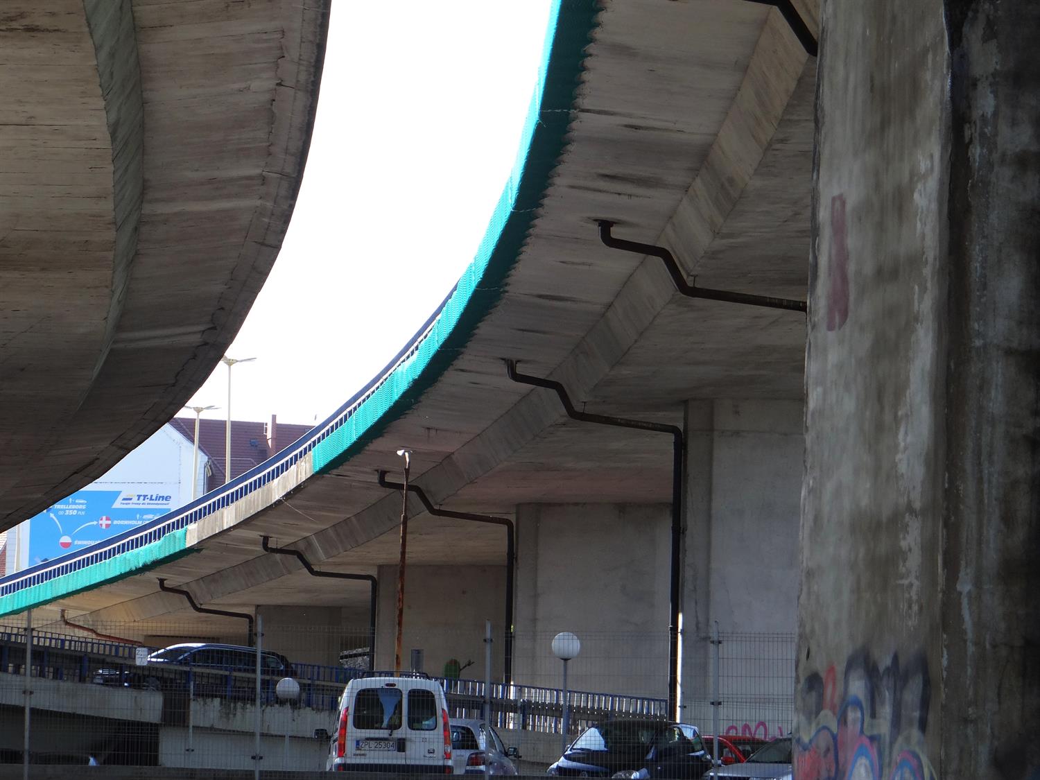 Na zdjęciach: Osiatkowane obrzeża estakad Trasy Zamkowej w Szczecinie