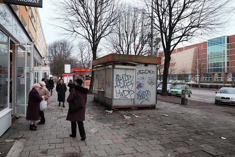 Na zdjęciu: Do niedawna tak wyglądał ten fragment al. Wyzwolenia 37-47. Stały tam kioski handlowo-usługowe o dość specyficznej estetyce. Ich dzierżawy wygasły z ostatnim dniem grudnia ub. r. Miasto ich nie przedłużyło, dając szansę nowoczesnym pawilonom handlowo-usługowym patrz: wizualizacja).