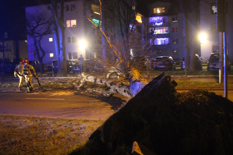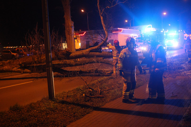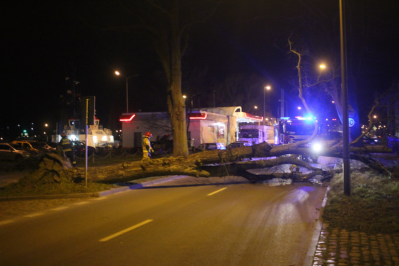 Silny wiatr przewrócił potężne drzewo rosnące przy Wybrzeżu Władysława IV w Świnoujściu. Na miejscu pracuje straż pożarna, a droga jest nieprzejezdna. Zgnieciony został fragment ogrodzenia jednej ze wspólnot przy ul. Bohaterów Września.