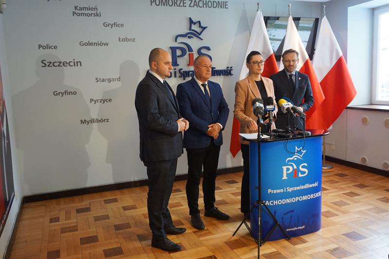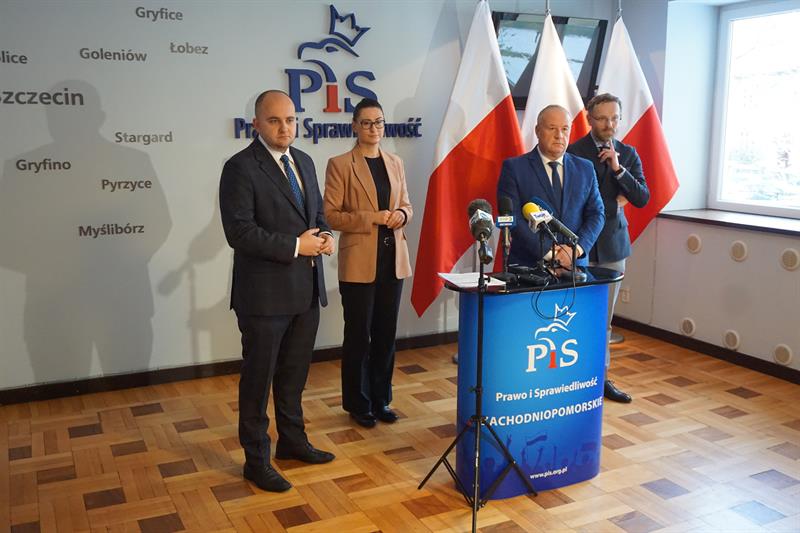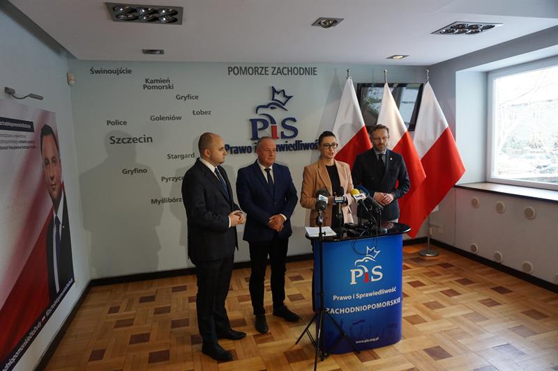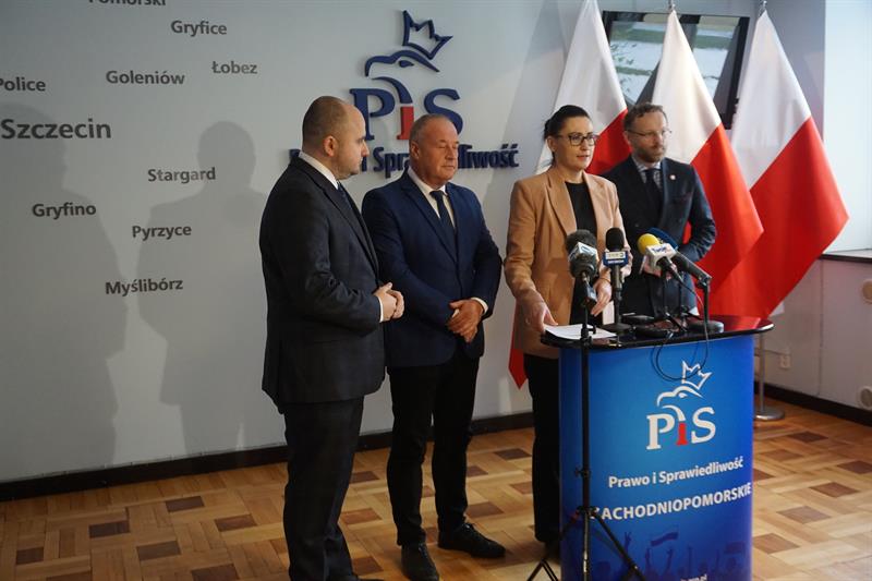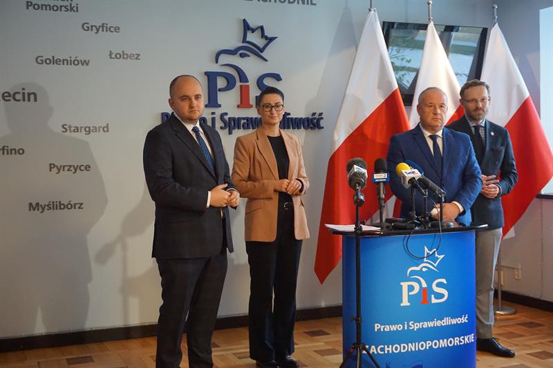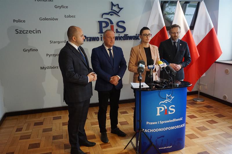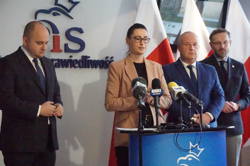 Politycy Prawa i Sprawiedliwości oraz Suwerennej Polski informują o aferze wiatrakowej. Fot. Krzysztof Żurawski