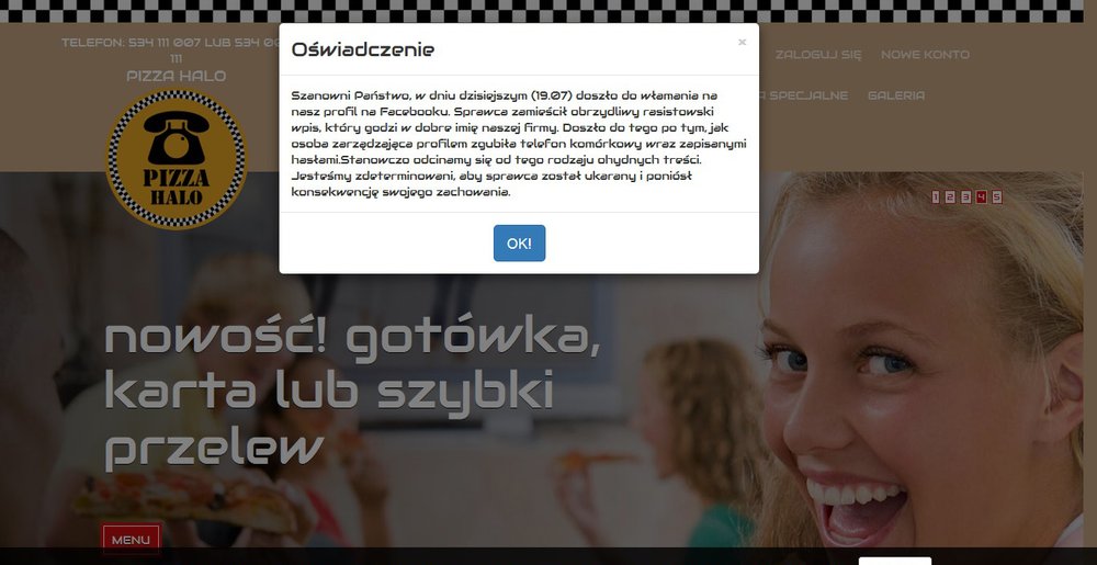 Na profil Pani konsul w wiadomomym mundurze Tuska tez sie niby włamywano ale prokurator umorzyl sledztwo oczywiscie ... a tutaj ,kto mialby sie tam wlamac, hakerzy z Rosji,Turcji ,Korei Polnocnej- no tak ta pizzeria to ich najwiekszy wrog, brak slow ,brak znajomosci historii a co najlepsze biedaki wierza w Jezusa ktory był przeciez zydem ,jaka pizzeria taka reklama ...