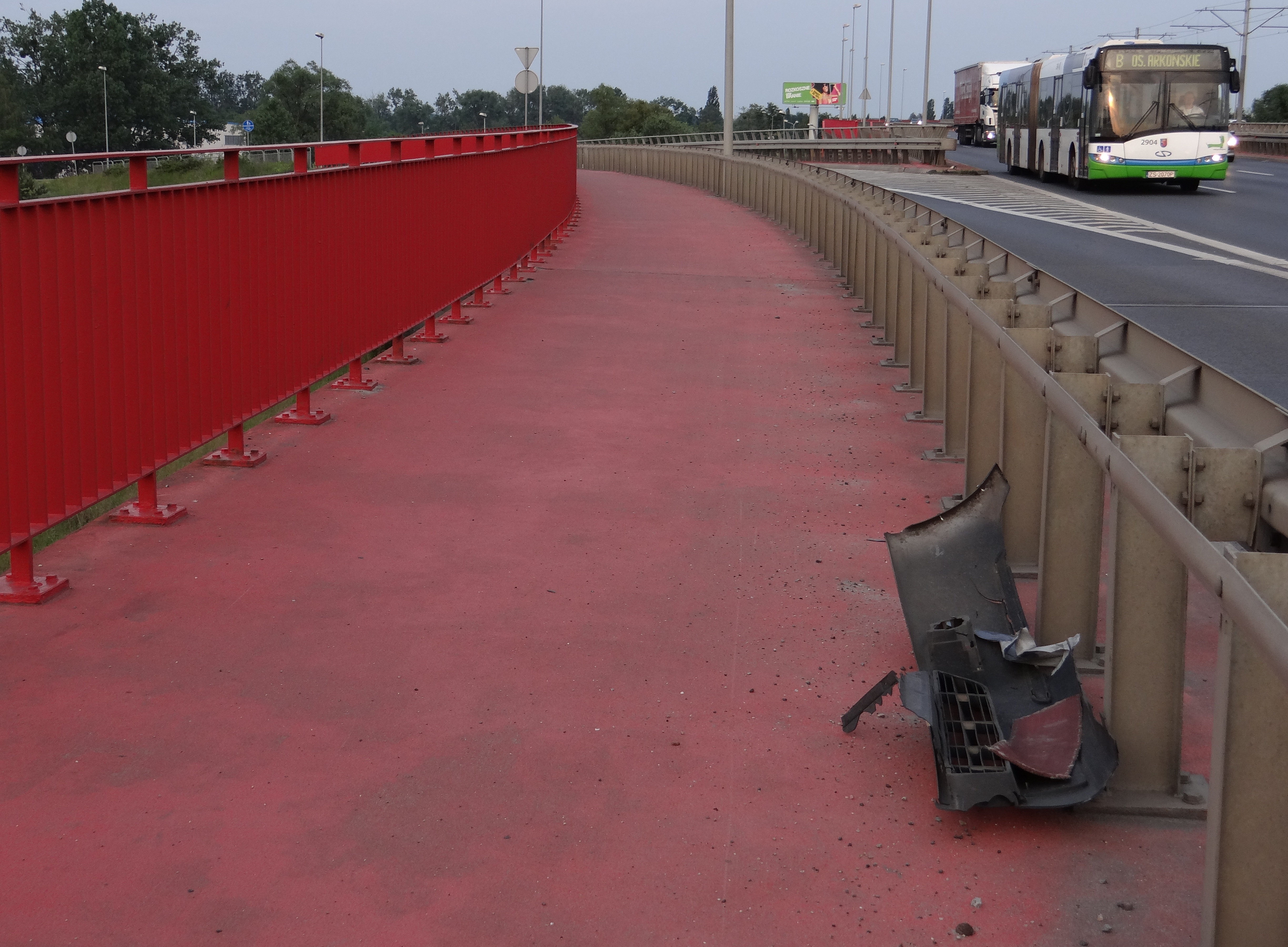 Zdemolowany fragment samochodowej karoserii wyrzucony na pas ścieżki rowerowej na estakadzie mostu w ul. Gdańskiej do Basenu Górniczego. Czas by najwyższy uprzątnąć ten złom z pasa do jazdy dla cyklistów. Widać, że z bieżącym utrzymaniem w należytym stanie takich szlaków spółki, którym ZDiTM za to przecież płaci, sobie nie radzą. Nie tylko zresztą w tym rejonie. ©℗