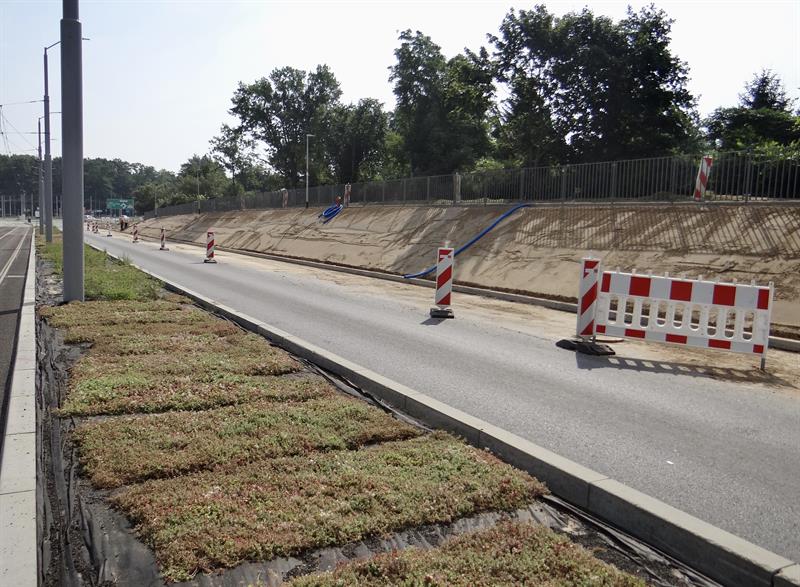 Na nowo usypywana jest skarpa wzdłuż ul. Władysława Szafera, która zdemolowana została doszczętnie wraz z nasadzeniami po ulewnych opadach deszczu z przełomu czerwca i lipca. Odtwarzana jest stopniowo jednocześnie jej roślinna okrywa z rozchodników.