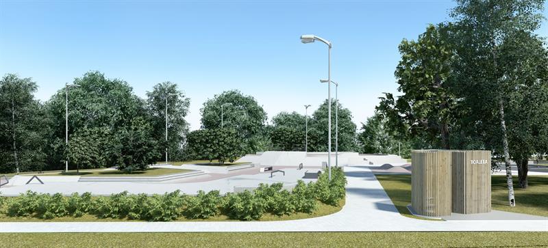 To przedsięwzięcie rozpisane na ponad 1,4 tys. mkw. Na tej powierzchni - terenie uzbrojonym w sieci sanitarne oraz oświetlonym - przewidziano nie tylko "przeszkody" dla skateowców, ale również zieleń urządzoną z trasami pieszymi i małą architekturą, toaletami.