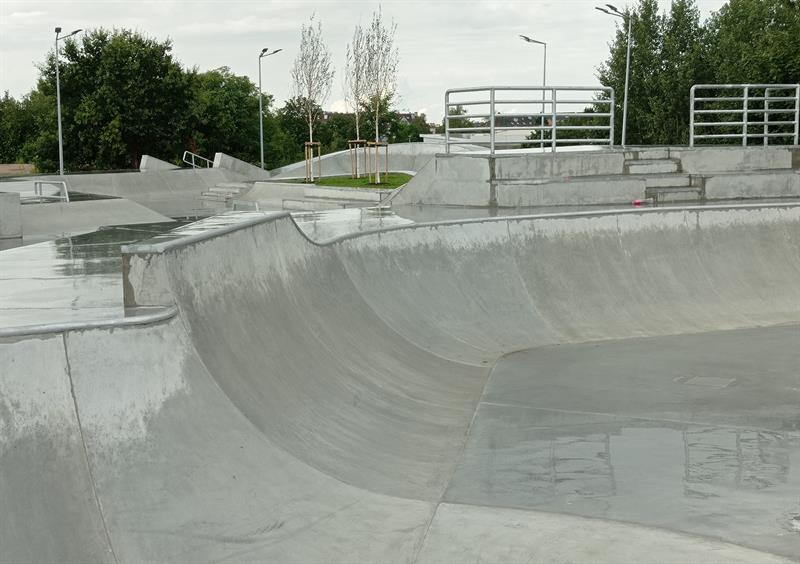 W betonowym skateparku – oprócz pagórków, zjeżdżalni, poręczy, murków, ramp i rurek – jedną z atrakcji jest tzw. bowl, czyli tor w kształcie miski. Do licznych przeszkód z betonu i stali prowadzą asfaltowe ścieżki, które jednocześnie mają być wykorzystywane przede wszystkim przez miłośników jazdy na rolkach.