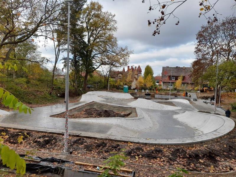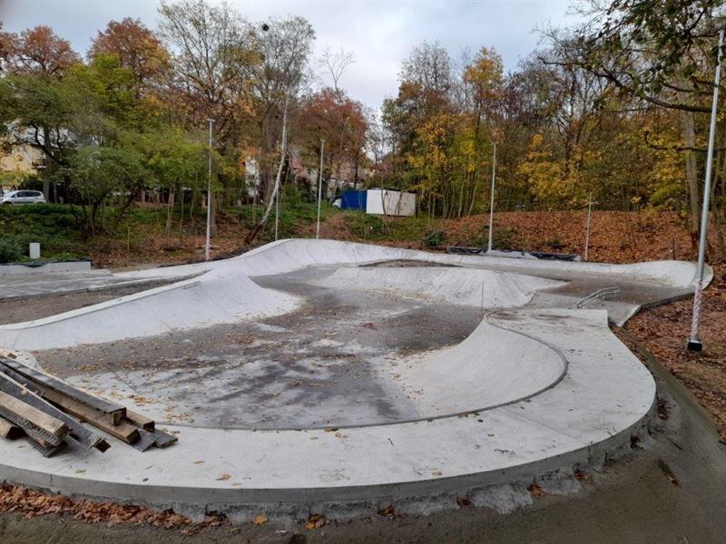 – Trwają teraz prace związane z zagospodarowaniem terenu – informuje Andrzej Kus, rzecznik miasta ds. komunalnych i ochrony środowiska. – Wykonywane są nawierzchnie mineralne oraz z kostki betonowej. Docelowo przy skateparku ustawione będą ławki parkowe, stojaki rowerowe, siedziska betonowe, kosze na odpady, tablica z regulaminem czy zabudowa przenośnej kabiny WC. Wykonane zostaną też trawniki. Posadzone zostaną łącznie 22 drzewa, w tym 14 z gatunku wiąz holenderski oraz 8 z gatunku grab pospolity, a także krzewy z gatunku berberys Thunberga i irga pozioma. Wykonywane jest przyłącze wodociągowe do zasilenia poidełka. Cały teren będzie monitorowany kamerami wizyjnymi.