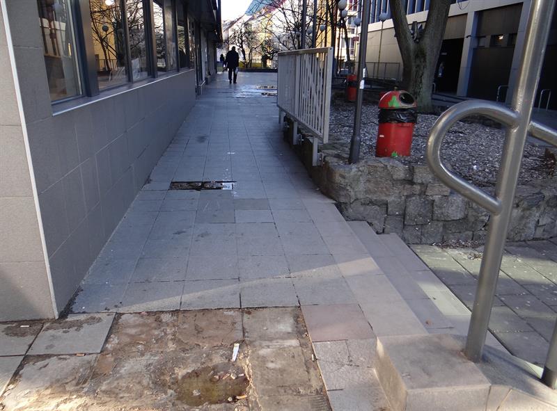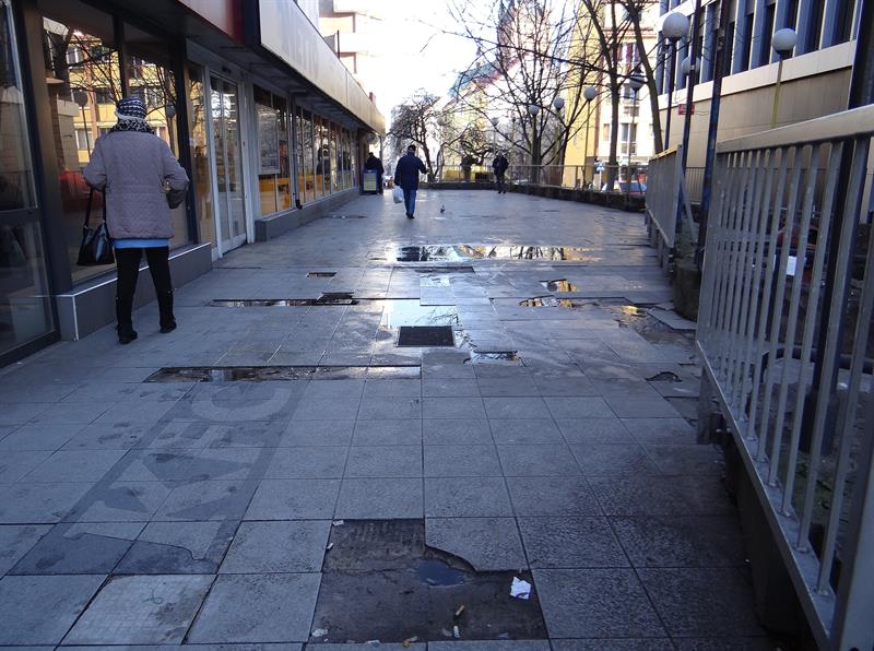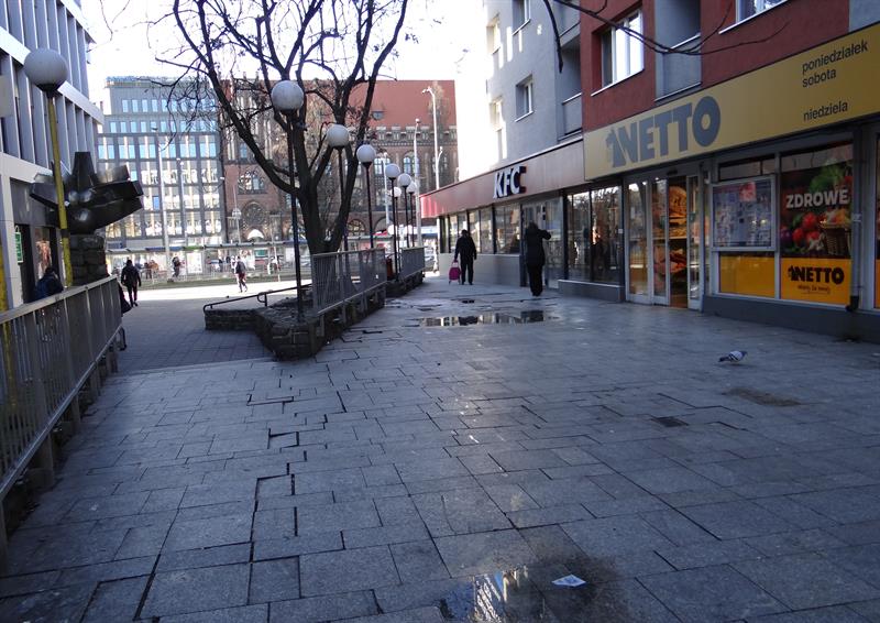 Odpadające płytki, spod których straszą betonowe wyboje, wodne potoki i rozlewiska po deszczu, a „płynąca" i zapadająca się nawierzchnia na co dzień. Tak wygląda chodnik łączący al. Niepodległości z ul. Grodzką i Tkacką, w cieniu biurowca Brama Portowa I. Na mapie Szczecina jest oznaczony tylko cienką zieloną linią. Jako dla ruchu samochodów zamknięty odcinek, który formalnie jednak jest ulicą Zgodną. Teren miejski, Stare Miasto, a wygląda… Jak na pewno nie powinien wyglądać chodnik miasta o ambicjach metropolitarnych. Oj, nie tak panowie, nie tak!