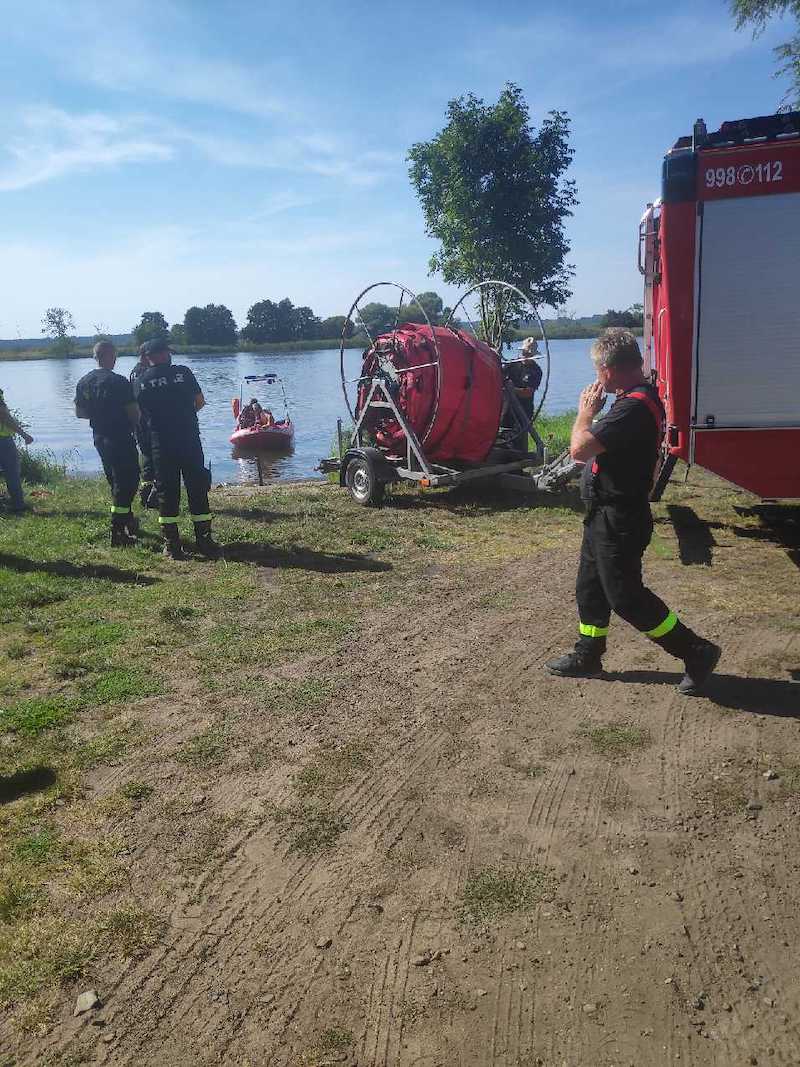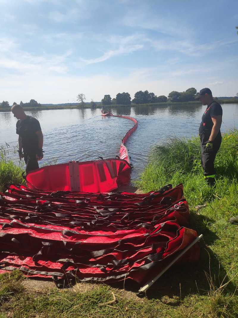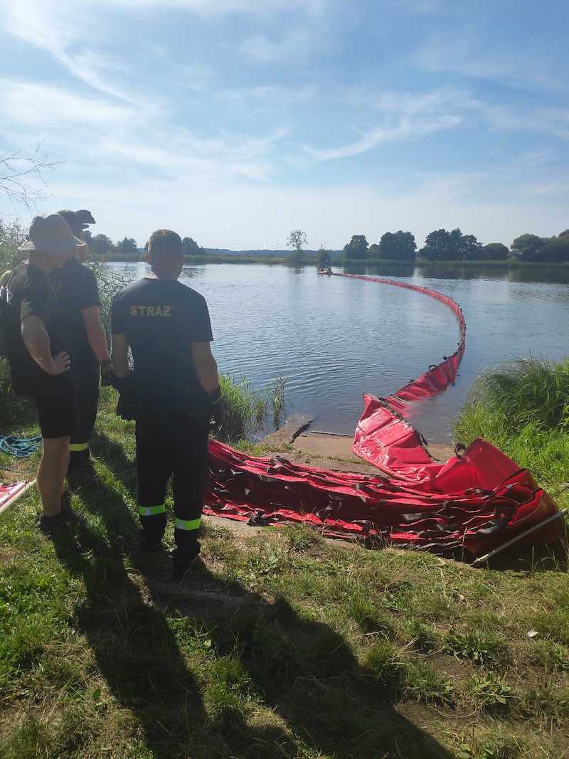 W niedzielę w gminie Gryfino trwa ciąg dalszy akcji usuwania skutków skażenia Odry. Na zdjęciach przesłanych przez naszego Czytelnika, widać strażaków z OSP Radziszewo i Wełtyń, którzy rozstawiają zaporę na rzece na wysokości Gryfskandu.