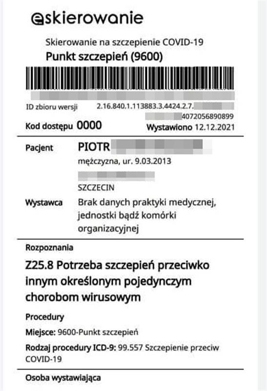 JUŻ 12 grudnia pojawiły się w systemach rodziców pierwsze aktywne e-skierowania na szczepienia dzieci od 5 roku życia. 13 grudnia miała zaś dotrzeć do Polski pierwsza partia preparatu dla najmłodszych. Cykl szczepień dla tej grupy - według Ministerstwa Zdrowia - ma się rozpocząć 16 grudnia. Jednak nie w każdym powszechnym punkcie będzie można zaszczepić dziecko, bo przed wakcynacją musi zbadać je lekarz. Informacje o punktach szczepień wykonujących szczepienia dzieci widoczne będą w e-rejestracji.