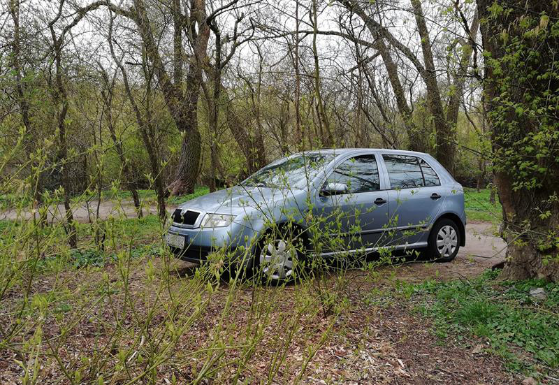 To się nazywa zielone parkowanie: skoda „cumująca" wśród krzewów i drzew Parku Leśnego Arkońskiego. Cóż z tego, że niespełna 20 metrów dalej, tuż przy wybiegu dla psów, jest urządzony - niemałym nakładem sił i środków - utwardzony, darmowy i niemal pusty parking. Skoro auto - jak widać - można postawić w szkodzie, czyli… „na trasie osła, gdzie trawa nie wyrosła".