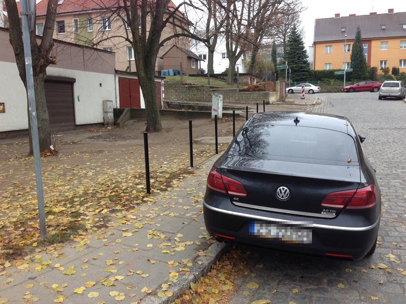 2. w drugim miejscu pojazdy wjeżdżały na zieleniec, stąd jest teraz klepisko. Już nie będą wjeżdżać. A słupków nie można było zamontować w chodniku bo jest za wąski.
