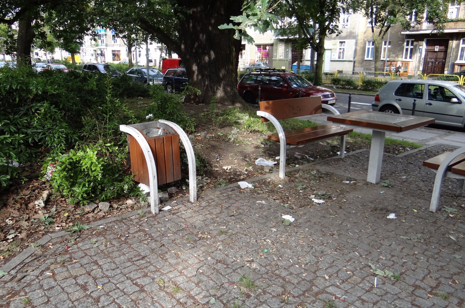 Szczeciński skwer im. Janiny Szczerskiej odstrasza spacerowiczów swym wyglądem. Walające się wszędzie odpadki, na trawnikach, pod krzewami i drzewami, potłuczone szkło na alejkach w rejonie dojścia do placu zabaw, m.in. od strony ul. Sikorskiego, zarastające chwastami brukowane kostką schody, brudne ławy, siedziska i stoły. Z kubłów wylewające się sterty śmieci. A kolejny weekend tuż, tuż.