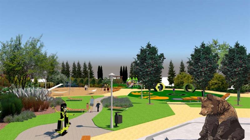 Docelowo, a wyłączone z rozpoczynającego się teraz etapu I zagospodarowania terenu, są m.in.: zakup i ustawienie tam leżanek parkowych (5 szt.), w sumie trzy drewniane rzeźby niedźwiedzia (3 szt.), plac trampolin (ok. 102 m kw,) z tablicami sensorycznymi i zestawem 13 trampolin oraz siłownia zewnętrzna (ok. 164 m kw.). Dodatkową atrakcją - nie licząc wspomnianych rzeźb - mają być wkomponowane w nawierzchnie odlewy z brązu odciśniętych łap niedźwiedzia w liczbie po pięć lewych i prawych.
