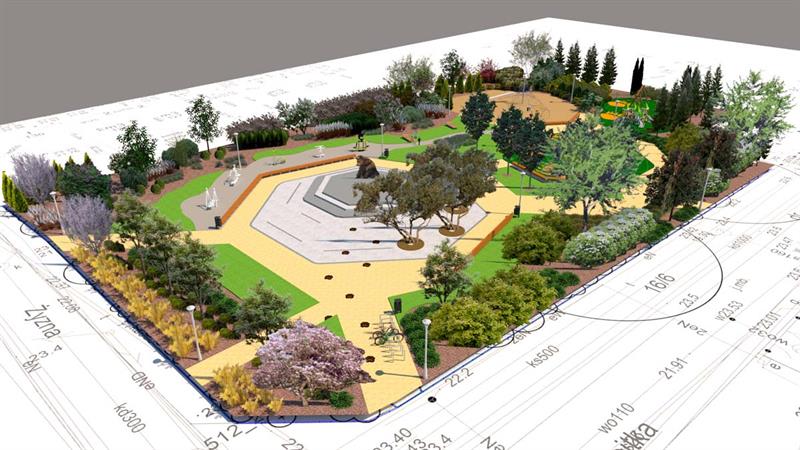 Natomiast plan nasadzeń, jaki sporządziła zajmująca się architekturą krajobrazu firma Green-Art Usługi Ogrodnicze Luiza Nowak, przewiduje obsadzenie placu 27 drzewami liściastymi, w tym: czeremchy pospolitej,, jabłoni John Downie, trzema odmianami jarząbu, magnoliami Galaxy, parrocją perską, platanem klonolistnym, wiśnią piłkowaną Kanzam f, pienną, a nadto 23 drzewami iglastymi, w tym: dwoma odmianami świerków serbskiego i serbskiego Nana oraz krzewami taki jak: dereń, forsycja,. suchodrzew, lilaki, irga, jaśminowiec, kolkwicja chińska, obiela groniasta, suchodrzew tatarski i chiński, pięciorniki krzewiaste, ogniki szarłatne, pigwowiec japoński, porzeczka alpejska, tawuła japońska i nippońska, złotnik japoński, jałowiec skalny, kosodrzewina, żywotniki, a z traw odmiany chińskiego miskanta, japońskiej rozplenicy i z pnączy wiciokrzew zaostrzony. ©℗