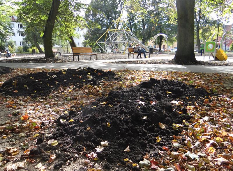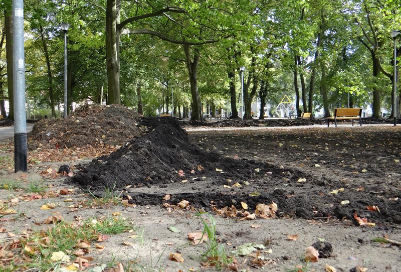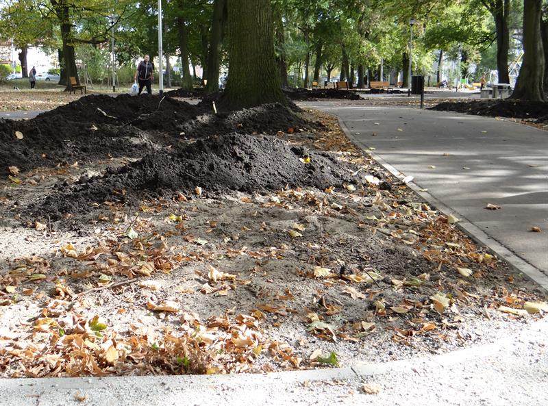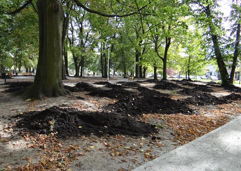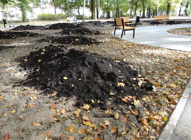 - Niestety, nowych nasadzeń wciąż brak. Za to od września towarzyszy nam iście księżycowy krajobraz: na skwerze pojawiały się niewielkie kopce czarnej ziemi - komentuje pani Lidia, mieszkająca tuż przy skwerze im. Badetki. - Za mało tego, żeby posłużyła do założenia trawników z siewu. Bo zgodnie z zaleceniem Zakładu Usług Komunalnych, powinno to polegać na „dowiezieniu ziemi żyznej i rozścieleniu jej oraz wyrównaniu powierzchni na grubość 25 centymetrów". O wiele za mało tego również na założenie trawników z rolki, bo według wzoru przekazanego mi w ZUK, na tydzień przed planowanym układaniem darni należy zasilić glebę nawozem do trawników, następnie „rozścielić 10-centymetrową warstwę żyznej gleby". Skoro na skwerze ma się pojawić ponad tysiąc nowych krzewów, to wątpię, aby tej nawiezionej ziemi starczyło nawet do całkowitego zaprawienia dołów, w których mają być posadzone. Tym bardziej, że - jak mnie także poinformowano w ZUK - każdy z takich dołów ma być równy dwukrotnej objętości bryły korzeniowej danej sadzonki .