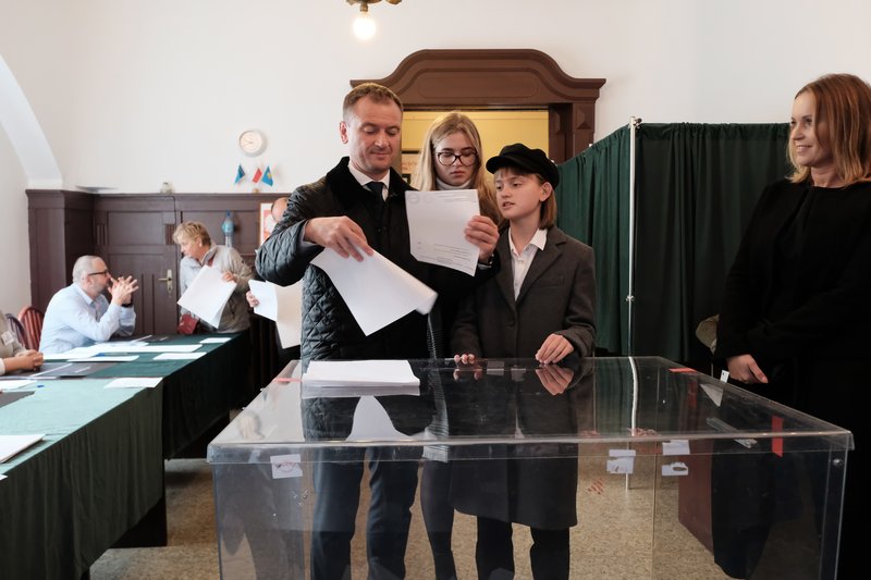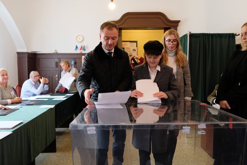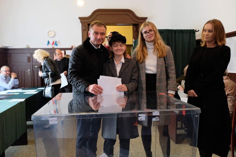 Poseł Sławomir Nitras z Platformy Obywatelskiej, jedynka tej partii w okręgu szczecińskim, głosował przed g. 10 w lokalu wyborczym przy ul. Krasickiego. Przyszedł tam z żoną i dwiema córkami.