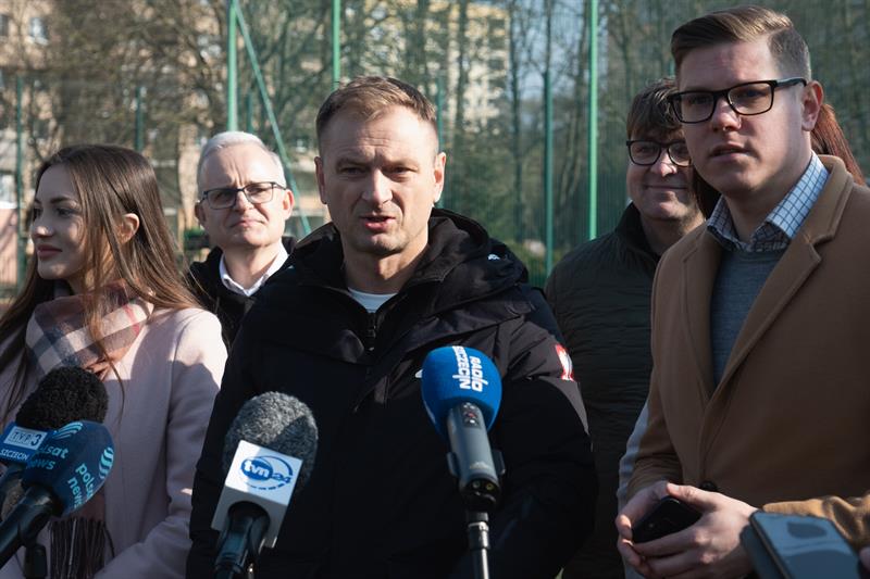 O dostępności boisk, programach rządowych wspierających rozwój infrastruktury sportowej oraz szansach reprezentacji Polski w piłce nożnej w barażach Mistrzostw Europy mówił w sobotę w Szczecinie minister sportu i turystyki Sławomir Nitras. Towarzyszył mu poseł Koalicji Obywatelskiej Patryk Jaskulski oraz politycy tej partii szczebla samorządowego.