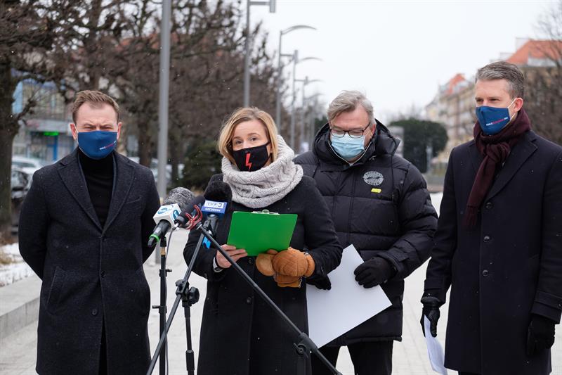 Posłowie (na zdjęciu od lewej) Sławomir Nitras, Magdalena Filiks, Artur Łącki i Arkadiusz Marchewka krytykowali TVP Info Fot. Dariusz Gorajski