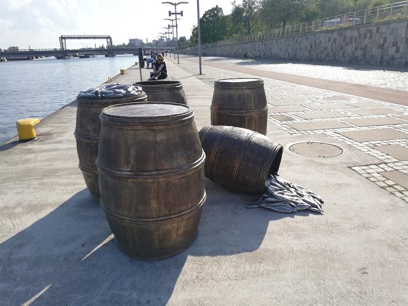 Na bulwarze Piastowskim stanęło pięć beczek z brązu. To kolejny element zagospodarowania szczecińskiej alei Żeglarzy.