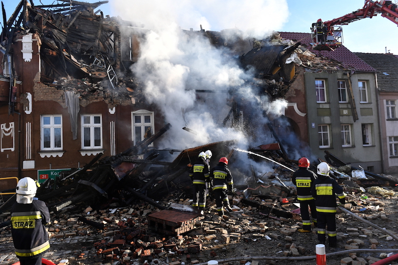 W środę w Mieszkowicach na skutek wybuchu gazu w budynku przy ul. Jana Pawła II zawaliła się jego ściana, a na dachu wybuchł pożar. Najciężej ranną osobę przetransportowano śmigłowcem do szpitala. Z uszkodzonego budynku ewakuowano 23 osoby.