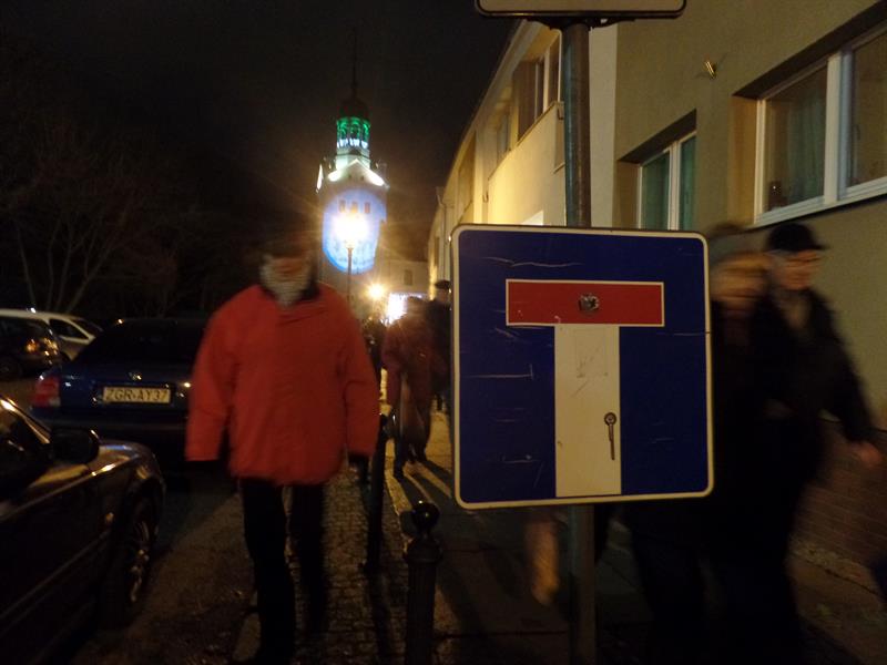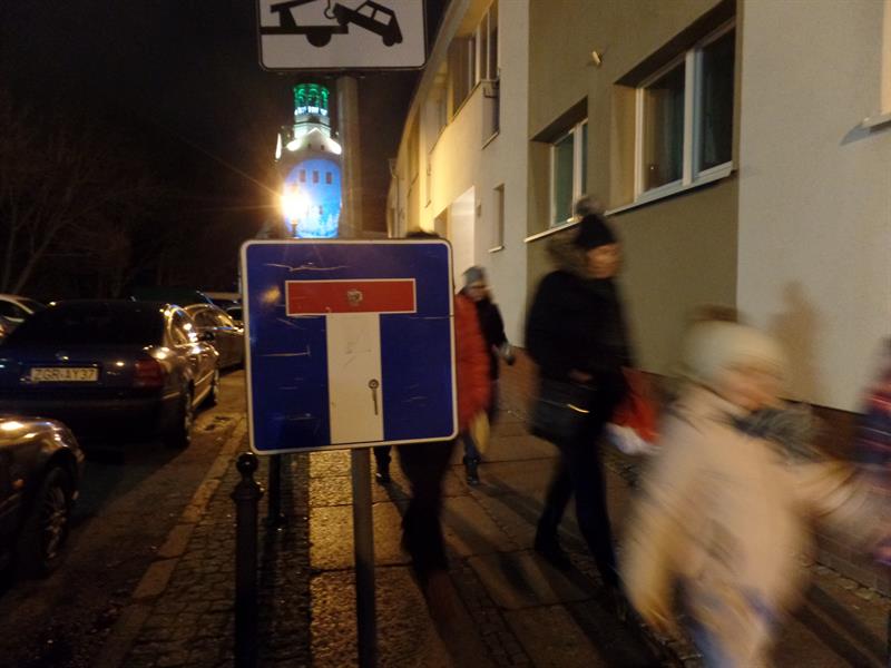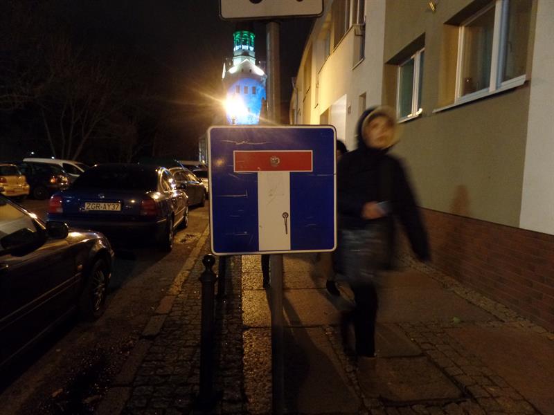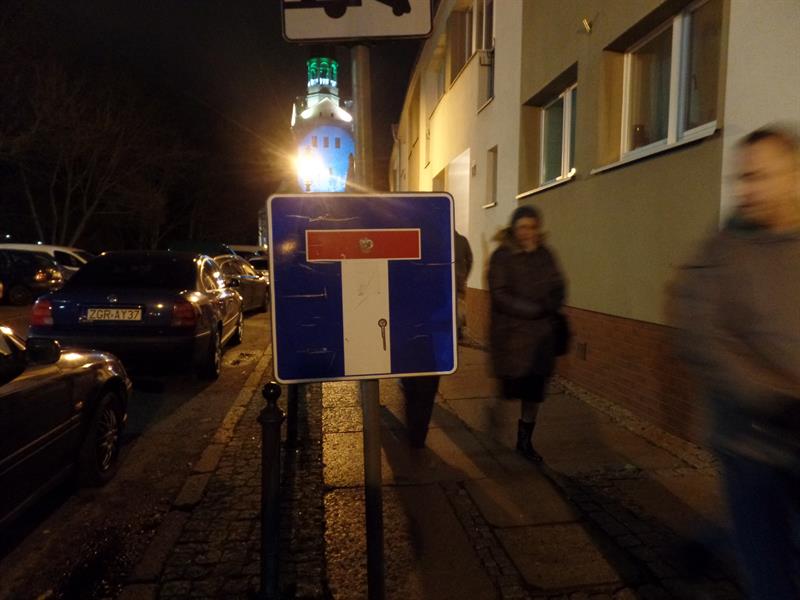 Mowa o znaku drogowym (D4a), informujący o drodze bez przejazdu, czyli ślepej uliczce. Został umieszczony przy ul. Korsarzy. Tak fatalnie, że jest nie tylko niemal niewidoczny dla kierowców, ale też stanowi nie lada przeszkodę dla pieszych, przechodzących tym i tak wąskim chodnikiem opodal Zamku Książąt Pomorskich w Szczecinie. Panowie drogowcy, poprawcie swój błąd, bo w tak nieprzepisowo oznakowanej ślepej uliczce zagubią się nawet sanie św. Mikołaja.