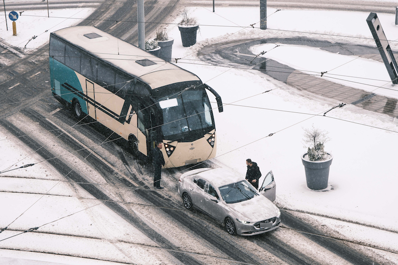 Mróz i śnieg nie powinny zaskakiwać w środku zimy. A jednak zaskakują. Do kolizji pojazdów doszło m.in. przy placu Żołnierza Polskiego. Autokar najechał na tył samochodu osobowej marki mazda. Na drogach jest ślisko, warto zachować szczególną ostrożność.
