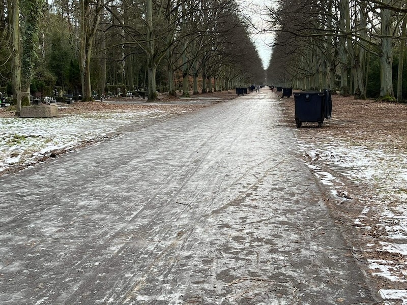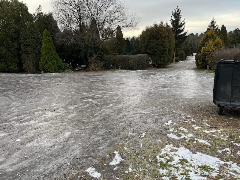 Na Cmentarzu Centralnym w Szczecinie można połamać nogi! Nawet główne alejki są oblodzone. Ludzie chodzą jak po lodowisku - alarmują nasi Czytelnicy.