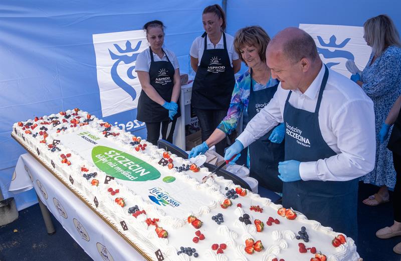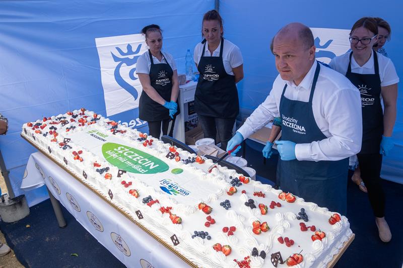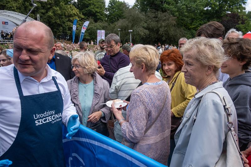 - Świętujemy kolejne urodziny miasta, które przez dziesięciolecia bardzo się zmieniło - mówił prezydent Szczecin Piotr Krzystek. - Widzimy to my, którzy mieszkamy w Szczecinie, ale zauważają to również osoby, które odwiedzają nasze miasto co jakiś czas. Za chwilę będziemy częstować państwa tortem, który z każdym rokiem jest cięższy. W tym roku ma 78 kg, bo tyle lat kończy polski Szczecin.