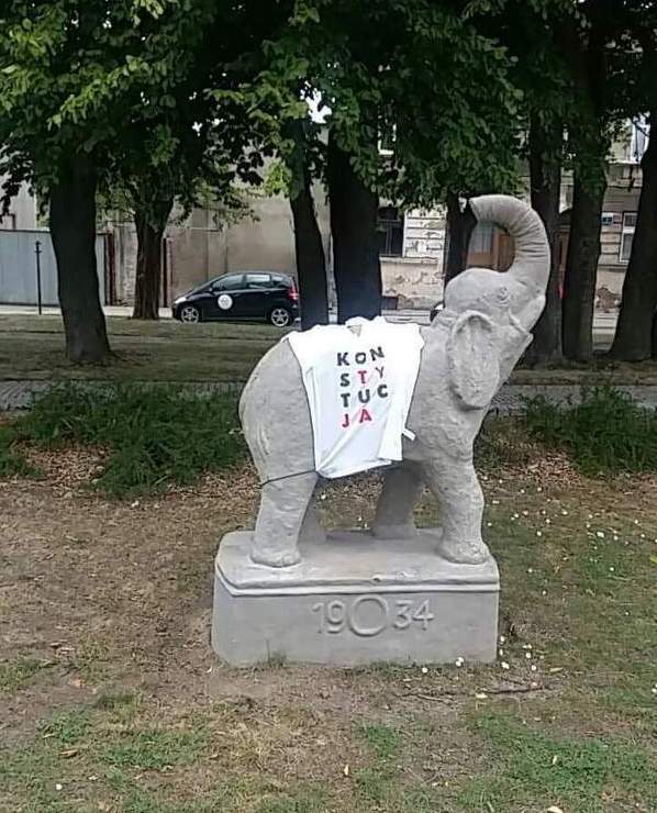 Od naszej Czytelniczki otrzymaliśmy zdjęcie zrobione w piątek (10 sierpnia) na szczecińskim Warszewie. Popularny słonik z tamtejszego placu zabaw okazał się zdeklarowanym obrońcą konstytucji, co spotkało się z żywiołową reakcją okolicznych mieszkańców (delikatnie rzecz ujmując - wolą słonia bez koszulki). Przypomnijmy, że KOD w ten weekend (niedziela) planuje akcję malowania charakterystycznego napisu na częściach garderoby przyniesionych przez osoby, pragnące zamanifestować swoje przekonania w taki właśnie sposób.
