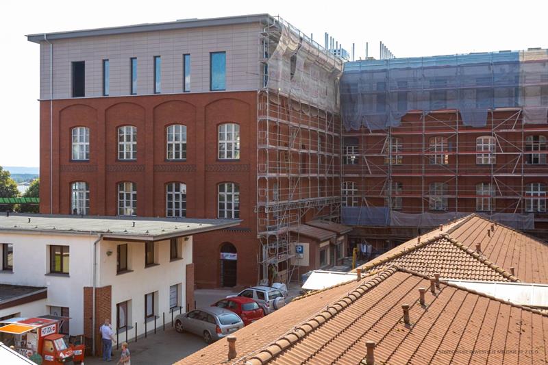 – W ramach realizowanych robót wykonano wzmocnienie konstrukcji hali poprzez wymianę płatwi na profile o większej wytrzymałości i dospawanie płaskowników na dźwigarach – relacjonuje Piotr Zieliński, rzecznik prasowy miasta ds. inwestycji. – Wzmocniono także konstrukcję stropu III piętra przez dospawanie płaskowników. Zainstalowane zostały świetliki na dachu. Na elewacjach północnej i zachodniej prowadzony był montaż konstrukcji fasady wentylowanej. Wykonywane było również omurowanie zabezpieczające przeciwpożarowe żeliwnych słupów.