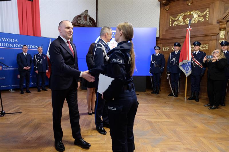 Komendant Wojewódzki Policji w Szczecinie, insp. Szymon Sędzik przypomniał, jak istotne jest pełnienie służby z zaangażowaniem i odpowiedzialnością. Zwrócił uwagę, że policja to zawód wymagający odwagi, determinacji i gotowości do niesienia pomocy w każdej sytuacji. Podkreślił również, że zachodniopomorska policja nieustannie inwestuje w nowoczesne technologie oraz sprzęt, by skutecznie reagować na potrzeby obywateli.