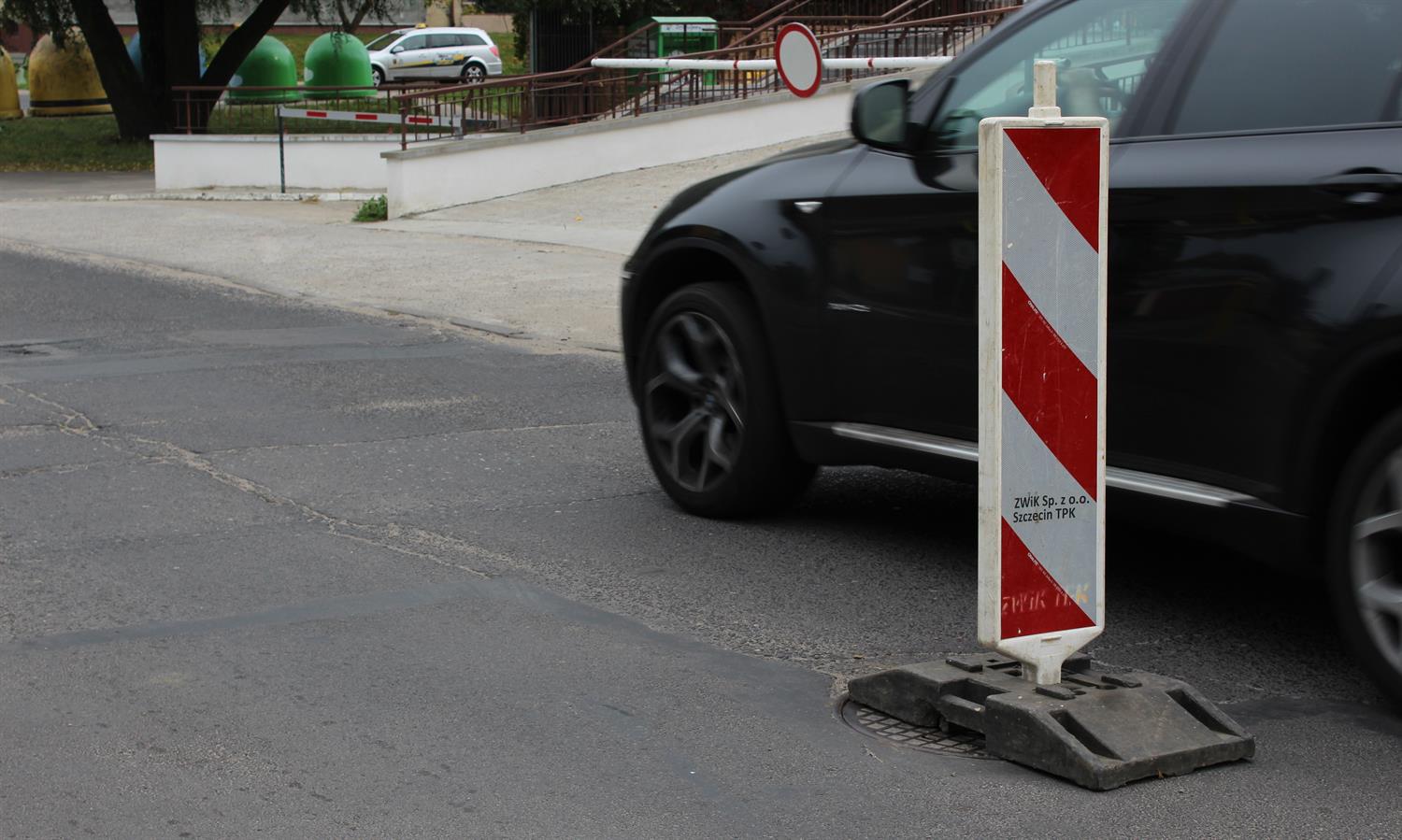 Od kilku tygodni kierowcy narzekają na słupek, który stoi na środku jezdni przy ul. Hrubieszowskiej na szczecińskich Gumieńcach. Zabezpiecza studzienkę kanalizacyjną.