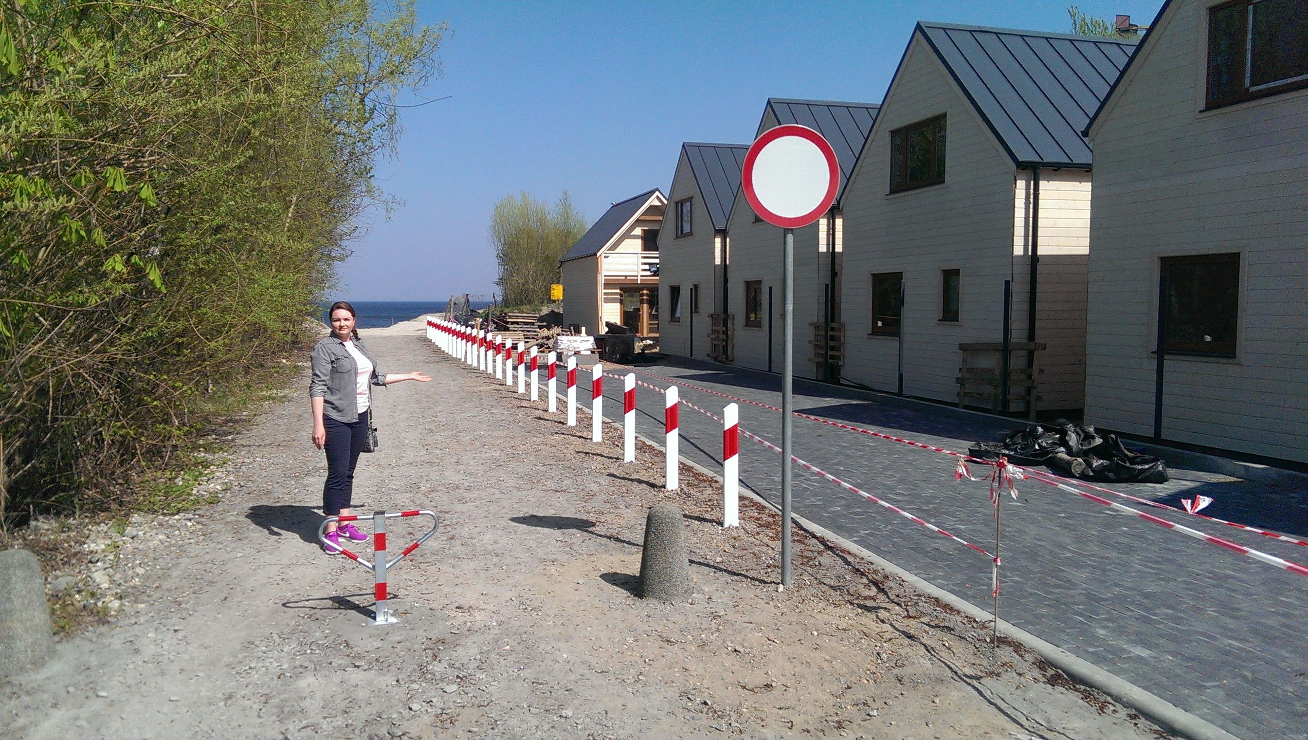 W ślad za pismem od burmistrz Mielna 18 kwietnia br. pojawili się niespodziewanie pracownicy służb drogowych w asyście funkcjonariuszy policji i straży gminnej. Z pełnomocnikiem inwestora nikt nie chciał rozmawiać, a tym bardziej przeglądać dokumentów. Drogowcy zamontowali rząd słupków wokół działki, co – zdaniem Magdaleny Zakrzewskiej – uniemożliwia dojazd do posesji i prowadzenie prac budowlanych. Skoro nie ma dojazdu do 22 miejsc postojowych ośrodka, to inwestor nie spełnia warunków zabudowy.
