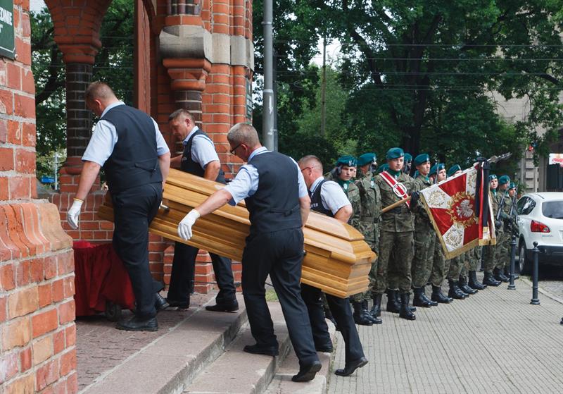 Ale jak widać wyjściowe mundury mają grabarze, a kompania honorowa mniejszy i co za tym idzie lżejszy sztandar niż kiedyś.