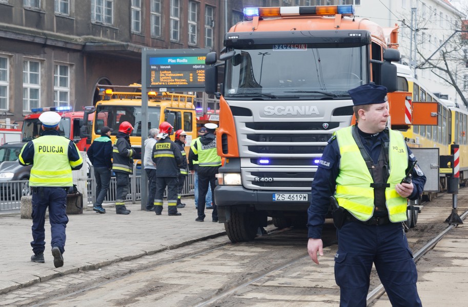 W poniedziałek, tuż po godzinie 14 na placu Rodła w Szczecinie pod tramwaj linii nr 12 wpadł 63-letni mężczyzna. Poniósł śmierć na miejscu. W akcji zabezpieczania miejsca wypadku brały udział cztery zastępy straży pożarnej, kilka jednostek policji (która na zlecenie prokuratury prowadzi czynności w tej sprawie) oraz pogotowie ratunkowe. Potrzebny był także wóz techniczny, który podniósł tramwaj, aby wydobyć ciało. Trwają utrudnienia na linii tramwajowej od strony placu Grunwaldzkiego. Uruchomiona została zastępcza komunikacja autobusowa.