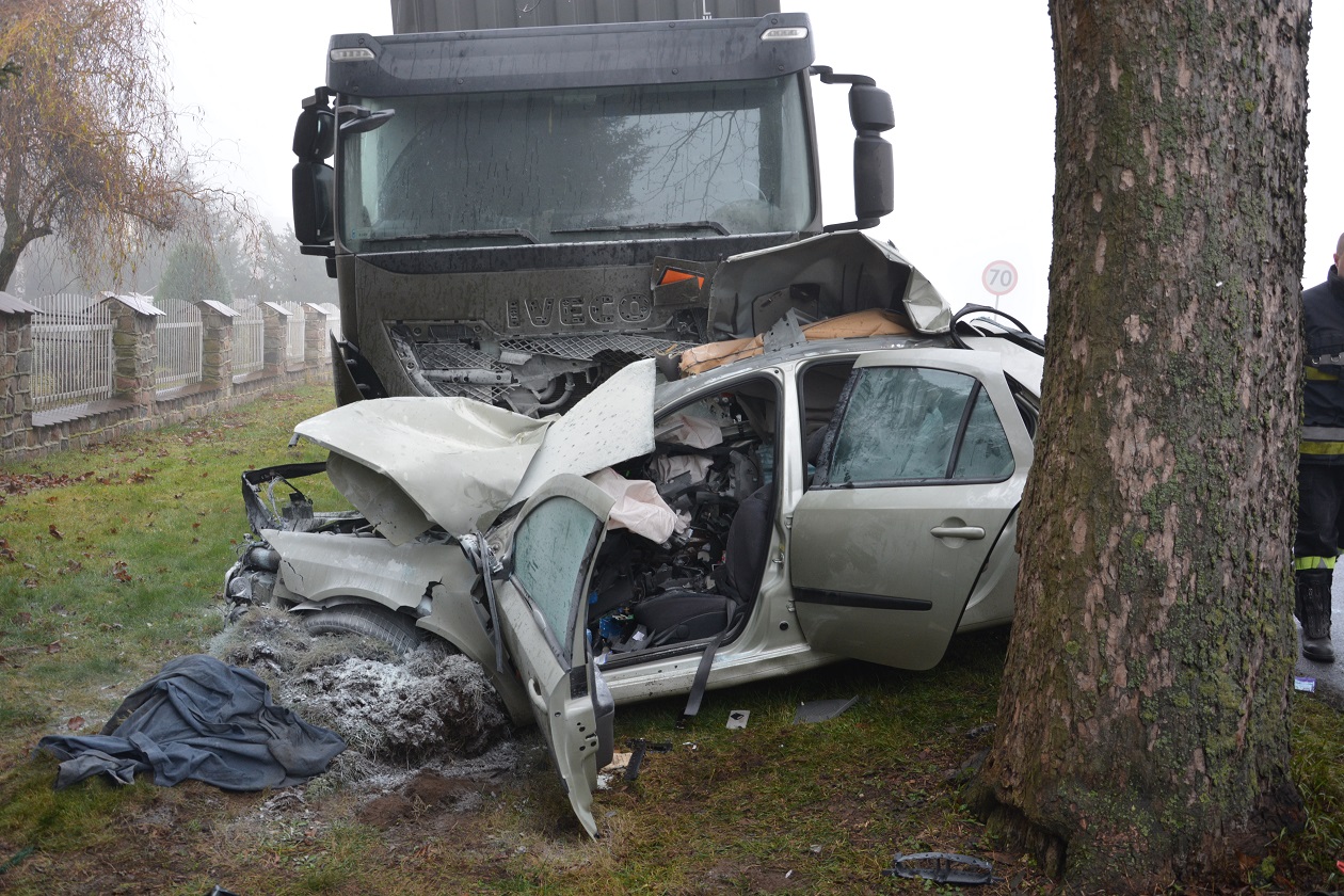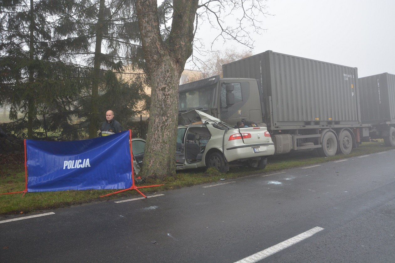 - Prawdopodobnie, usiłując uniknąć zderzenia, kierowca laguny nie zdążył zakończyć manewru i zahaczył o opla, a następnie nie panując już nad pojazdem wjechał na przeciwległy pas ruchu wprost pod jadącą w stronę Stargardu wojskową ciężarówkę marki Iveco - relacjonuje podkom. Łukasz Famulski ze stargardzkiej KPP. - W wyniku zderzenia 43-letni kierowca auta renault laguna poniósł śmierć na miejscu. Natomiast 73-letni kierowca opla, jego pasażerka oraz 28-letni kierowca tira nie doznali obrażeń ciała.