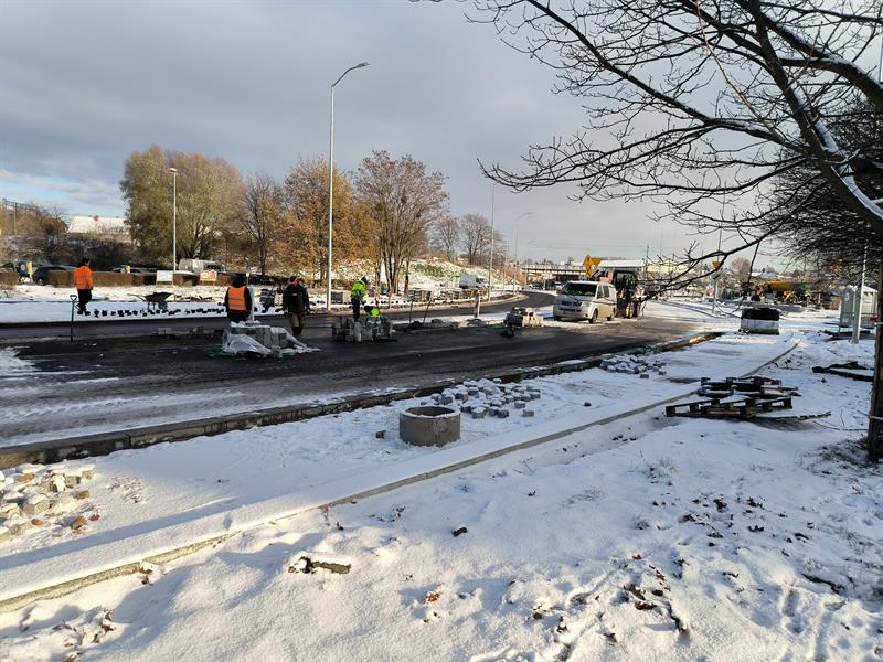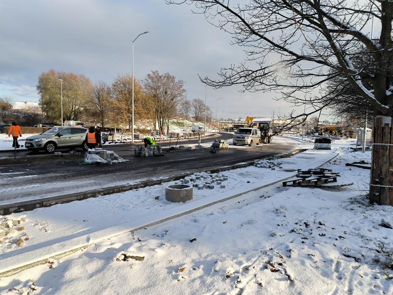 – Nawierzchnie bitumiczne są wykonane – opisuje postępy inwestycji Łukasz Mielnik, starszy specjalista ds. komunikacji z STRABAG Sp. z o.o. – Ustawiliśmy wiaty przystankowe, a obecnie trwają prace brukarskie, które również są na ukończeniu. Montujemy tzw. elementy małej architektury (ławki, kosze na śmieci, słupki blokujące wjazd dla samochodów na chodniki, barierki) oraz znaki drogowe.
