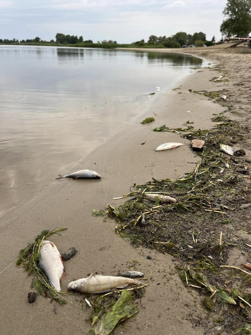 Dzisiaj widziałem Dąbiu na przystani u "Chińczyka" martwe ryby. Co najmniej 10 szt. wielkości od ok. 20 cm do 40 cm.