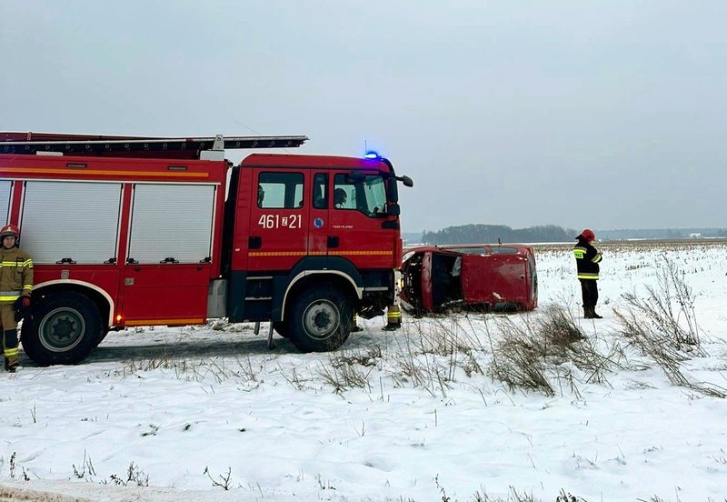 Na śliskich jezdniach dochodzi do licznych stłuczek i wypadków. Na drodze z Golczewa do Przybiernowa (pow. goleniowski) samochód osobowy marki Renault wpadł w poślizg i dachował. Poszkodowana kobieta opuściła pojazd o własnych siłach.