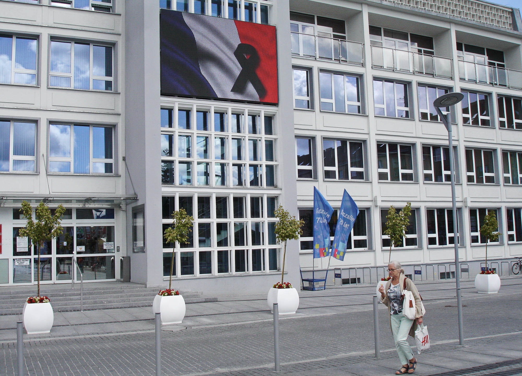Nie milkną echa tragedii w Nicei. W imię solidarności na telebimie w Koszalinie, który wisi na ratuszu, wstrzymano emisję reklam. Jest wizerunek flagi francuskiej z dodatkiem kira.
