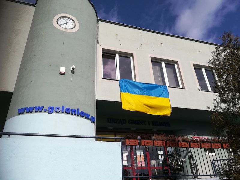 W oknie gabinetu burmistrza Goleniowa została w czwartek rozwieszona duża flaga Ukrainy, jako wyraz solidarności z zaatakowanym przez Rosję krajem. Tego samego dnia burmistrz Krupowicz wysłał do starosty rosyjskiego Gurjewska krótki list, w którym zawiadamia go o natychmiastowym zakończeniu partnerskiej współpracy między Goleniowem a Gurjewskiem, związanym z bezprzykładną napaścią Federacji Rosyjskiej na niepodległą i suwerenną Ukrainę.