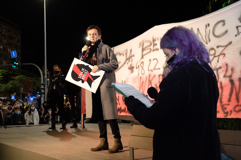 - Dziś chyba czujemy wszystkie, co znaczy zdanie: "polityka interesuje się nami, nawet gdy my nie interesujemy się nią". Orzeczenie Trybunału Julii Przyłębskiej jest jak ćwiczenie z wychowania obywatelskiego o dużym zasięgu. Uzmysławia, iż nasze brzuchy czynią z nas osoby pod specjalnym nadzorem, mniej wolne od mężczyzn. Hańba! Żyjemy, kochamy i jesteśmy cały czas pod nadzorem upaństwowionej ideologii rodzenia: przez zakaz aborcji, kiepską edukację seksualną, propagowanie modelu rodziny z podporządkowaną kobiecością, wykluczanie nienormatywnych zachowań. Każda i każdy, kto stawia dziś pytania o zasady funkcjonowania państwa, kształtuje politykę. Macie wybór! Mamy wybór! Możemy głosować, należeć do dowolnego kościoła lub deklarować się jako niewierzące. Możemy działać lokalnie, stowarzyszać się, tworzyć sieci informacji. Im bardziej jesteśmy świadome, tym mniej daje się nami manipulować. Nasz bunt jest działaniem, którego skutki będziemy odczuwać przez lata. Wzmocnimy to działanie: praktykując obywatelskość i wspierając się. Bądźmy razem!