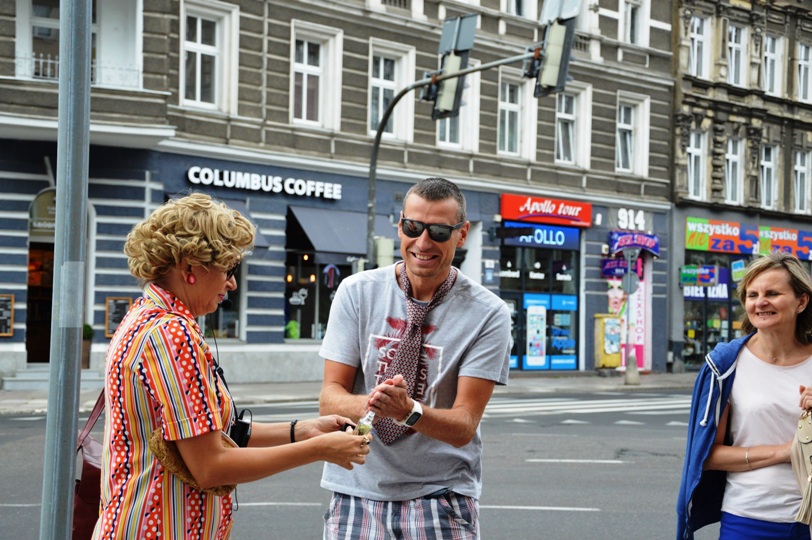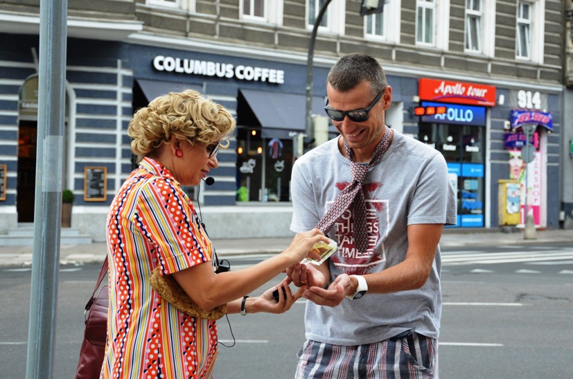 Gustowna torebka i walizka prowadzącej spacer przewodniczki Justyny Machnik mieściła wiele niespodzianek – wśród nich m.in. bilety wstępu do niedostępnego obecnie kina „Kosmos”. Dla pilniejszych uczestników przygotowano nawet nagrody. Za prawidłową odpowiedź na trudne pytanie można było wygrać kilka rolek szarego papieru toaletowego na sznurku lub parę złotych. Okazuje się więc, że w Szczecinie możliwe jest wszystko – na darmowym spacerze można jeszcze zarobić!